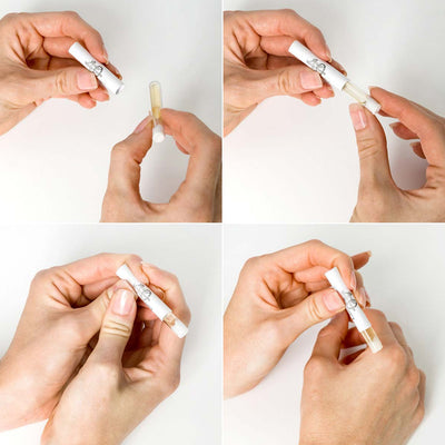 Holding Tensage Intensive Serum 40 ampoule upright with sleeve in place, crush gently between thumb and forefinger. Remove sleeve and place back on the ampoule with swab exposed. Squeeze gently to begin the flow of serum and apply an even layer cleansed, dry skin in light, sweeping motions.